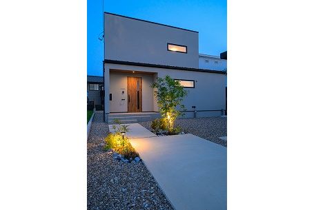 種類の違う照明を設置し、夜のアプローチを幻想的に演出しております。